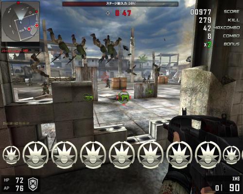 オンラインFPSゲームとしては日本初となる、最大4人でチームを組み、押し寄せる敵を倒し続けて陣地を守る