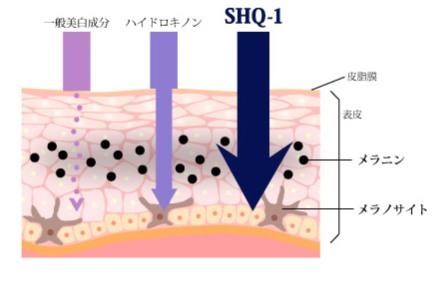[SHQ-1(R)」はシミ取り・美白成分としてすでに欧州やアメリカでは主流であり、日本国内においても皮膚科や美容形成外科などの医療機関では処方薬として活用されている成分。
