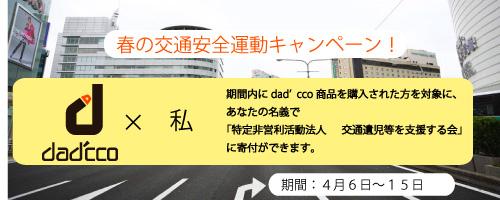 お買い上げ頂いた皆様のお買い上げ金額から500円分をお買い上げ頂きました注文者様からの名義でNPO法人『交通遺児等を支援する会』へ寄付するキャンペーンを行います。