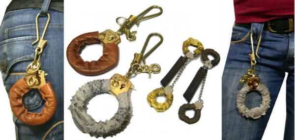 またミニチュアサイズは、指がはいる程度の大きさのミニ手錠で両方に革が巻いてあります。