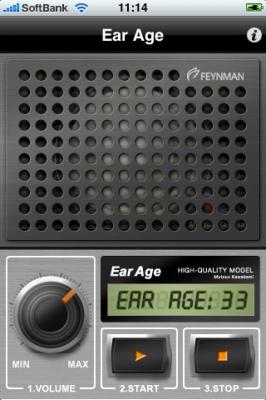 アップル社のiPhone向けアプリケーションを専門に開発・販売する株式会社FEYNMAN(本社:東京都渋谷区、代表取締役:八尾憲輔、資本金:500万円、以下、FEYNMAN)は、2009年4月14日、「おじさんには聞こえない音」を使い耳年齢を測定するアプリ「Ear Age」をバージョンアップしました。