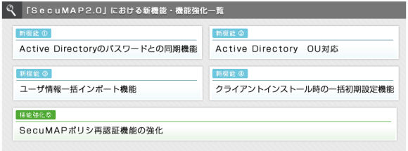 【SecuMAP2.0における新機能・機能強化一覧】
