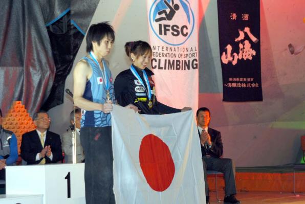 女子では世界ランキング2位の野口啓代(のぐちあきよ)選手が08年7月のフランス大会以来、2度目の優勝を飾りました。男子では村岡達哉選手が2位に入り、日本人二人が表彰台に上がるというすばらしい結果を収めることができました。PowerNaviの契約アスリートである渡辺数馬(わたなべかずま)選手も準決勝15位と、自己最高順位を更新しました。
