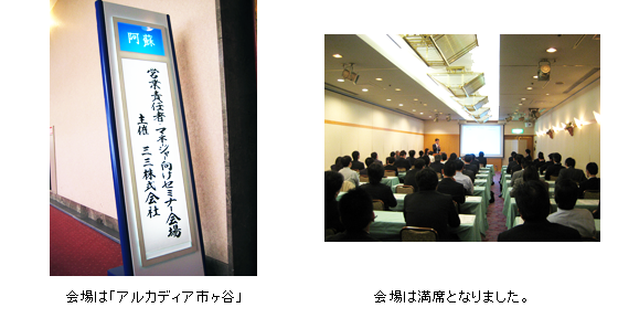 4月20日(月)に東京・市ヶ谷にて行われた弊社初の自社セミナーが盛況のうちに終了いたしました。大勢のお客様にお越しいただき、会場は満員御礼となりました。