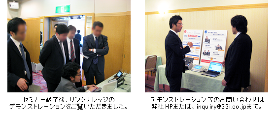 今後も定期的にこのようなセミナーを開催し、リンクナレッジの最新情報や導入事例を直接お伝えしていきたいと考えております。 セミナー情報は、弊社ホームページにて随時お知らせ致します。
