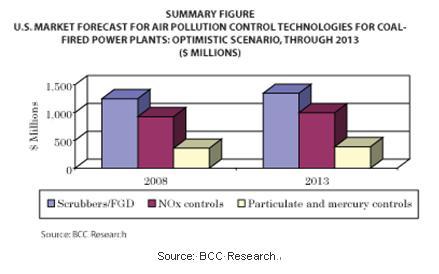 3番目に大きなセグメントは微粒子および水銀制御で、2008年において3億6000万ドルであった市場は、2013年には3億8800万ドルへ増加する見込みです。