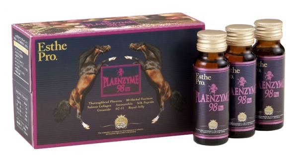 エステサロン向けにプロ用の美容商材を卸販売する製造メーカー株式会社エステプロ・ラボ(東京都港区/資本金3300万円)は、2009年5月14日より、他に類を見ない究極の内面美容のスペシャルドリンク(サロン専売品)「プラエンザイム98プロ」を新発売する。このプロ仕様の美容ドリンクの注目すべきは、これまで日本競馬界に数多くの名馬を輩出してきた北海道の名門有名ファームで安全に飼育された、大変稀少なサラブレッドの馬プラセンタ(胎盤)エキスを、1本に5000mgも高濃度配合した点である。現在、エステ界でも大変注目されているプラセンタ美容であるが、従来の豚由来のプラセンタではなく、国産サラブレッドの馬プラセンタを使用したのには理由がある。馬由来のプラセンタは、豚由来に比べ、含有アミノ酸の種類、濃度も格段に高く、また安全性においても極めて優れている。豚に比べ体温が5~6度高い馬は、寄生虫(害虫)を寄せ付けない体質であり、病気にもかかりにくく、また内臓がクリーンに保たれているため、薬やホルモンに対しても耐性が強い。哺乳類の中でも極めて安全性が高いと言える。それでいて、植物性プラセンタには無い、最も重要なファクターである細胞分裂にかかせない「細胞増殖因子(グロースファクター)」という成長因子を含有している。この美容ドリンクがさらに凄い点は、80種の植物酵素を1本に3000mg、鮭の皮から抽出した低分子サーモンコラーゲンを1本に10000mg、アスタキサンチン、AC11,ローヤルゼリー他、実に全98種もの有効美容成分を厳選し、絶妙な黄金比率にて凝縮配合に成功したのである。「プラエンザイム98プロ」は、まさにプロ用にふさわしい究極のスペシャル美容飲料と言えるのではないだろうか。