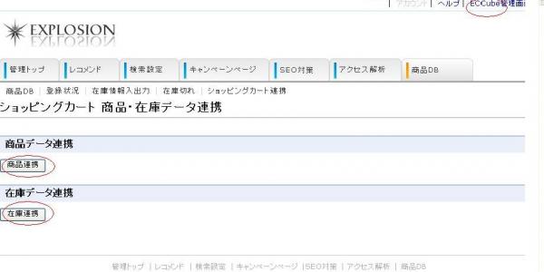 レコメンド管理画面より、ECCube管理画面へ移動できる。