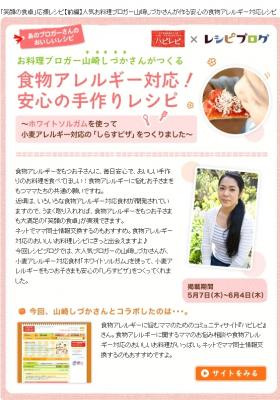 『レシピブログ』とのコラボページでは小麦粉の代用品として今、注目されている「ホワイトソルガム」を使った、小麦アレルギーをもつお子さまも安心の「しらすピザ」をご紹介しています。