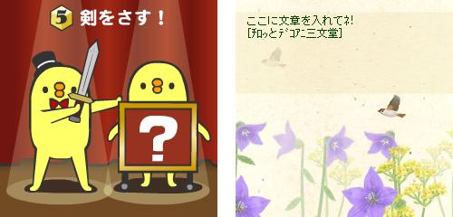 メニューリスト ⇒ メール ⇒ デコレーションアニメ ⇒総合 ⇒ チロッとデコアニ三文堂