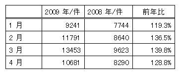 今回、当社は今年の年初からの世相として取沙汰されている「不況」と「ネットオークション市場」の関連性調査として「結婚関連商品」の2008年および2009年の1~4月の、ネットオークション市場の落札数比較を実施致しました。