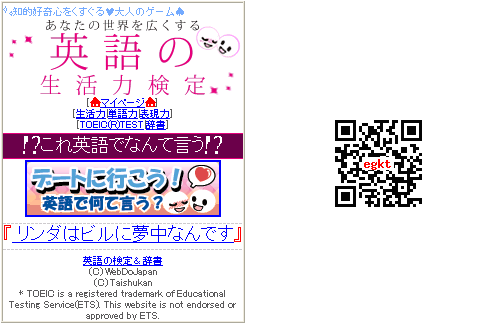 以外にも、Flashや携帯メールで楽しく英語検定ができる仕組みを多数取り入れています。