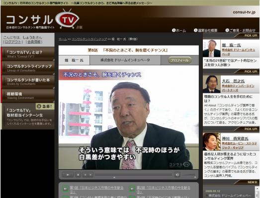 株式会社IPパートナーズ(代表取締役社長:飯沼 秀一、所在地:東京都渋谷区)は、2009年4月27日(月)より、コンサルタントのインタビュー映像を大量に発信するサービス『コンサルTV(ティービー)』(http://consul-tv.jp)をグランドオープンいたしました。