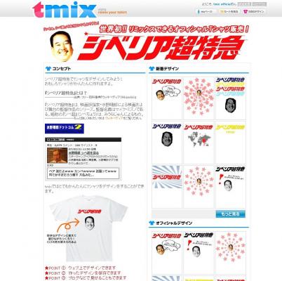 株式会社spice lifeは、オリジナルTシャツデザインサービス『tmix(ティーミックス)http://tmix.jp/』にて、今でもカルト的人気を誇る映画作品『シベリア超特急』のロゴや水野晴郎氏の画像を使ってオフィシャルTシャツをリミックスできるサービスを開始いたしました。