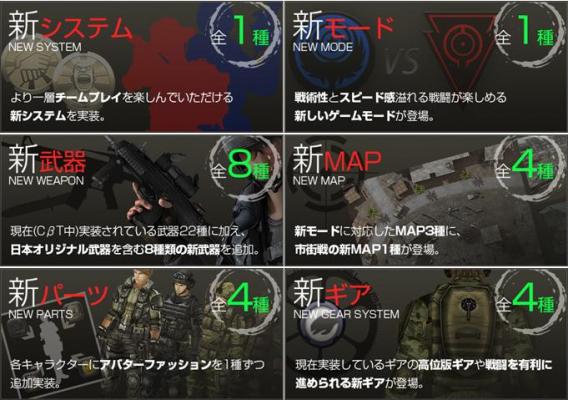 現在(CβT中)実装されている武器22種に加え、日本オリジナル武器を含む8種類の新武器を追加します。