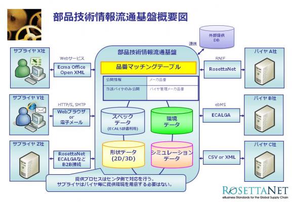RosettaNetでは、部品技術情報交換の標準を定義し、電子データでの情報交換を推進してきましたが、今回はその適用範囲を拡大し、より少ない投資で参加可能なSaaSモデルを利用することでサプライチェーンに関わる全ての企業からの情報流通を円滑に実施するべく検討を行います。