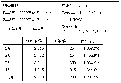 また、3キャリアを比較する調査期間は2008年1月~4月、2009年1月~4月としました。