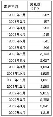 落札動向は、2008年6月から7月にかけて 「306件」から「3,163件」へと急激に落札数が増加していることが明らかになりました。