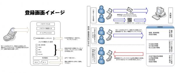 本システムは、6月中旬から開始する、大阪市が運営する市民への情報提供サービスの配信にご採用いただきました。利用者はパソコン/ケータイの両方から登録でき、また知りたい情報のみを選択して受信することができます。