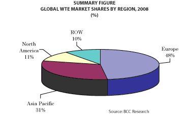 この市場は、熱WTE技術と生物系WTE技術に区分されます。現在、熱WTE技術がほとんどの市場シェアを占めており、2008年の実績は185億ドルでした。同市場は、2014年には237億ドルへと増加することが見込まれています。