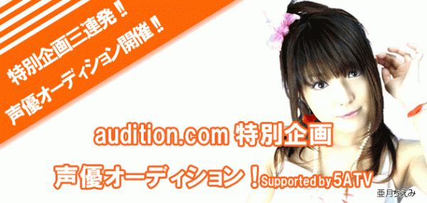 アニメ映画の声優オーディション!5ATV声優オーディションではご応募頂く内容を元に厳正なる審査の上、最終選考声優オーディションに残った方には提携声優プロダクションでデビューを全面パックアップします♪