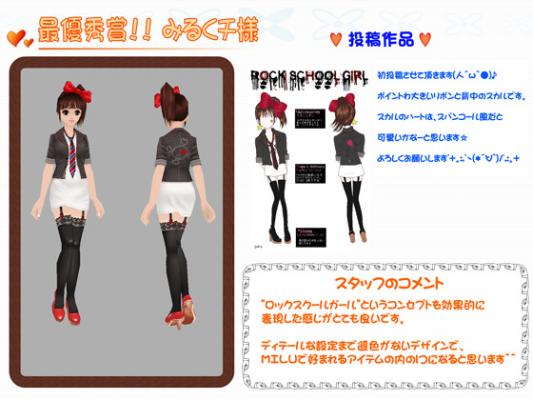 ※入賞された作品については、既にアイテム化され、実装されております。投稿者の方へプレゼントさせていただくと共に、ユーザーの皆様にご購入いただけるようになっておりますので、是非ご利用ください!