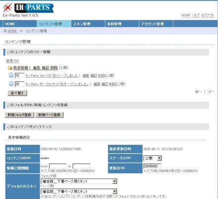 Ex-Partsは、サーバ導入型のCMS(コンテンツ・マネージメント・システム)とよばれる種類のソフトウェアで、簡単にサイト(WEBコンテンツ)管理を行うことを目的としたシステムです。