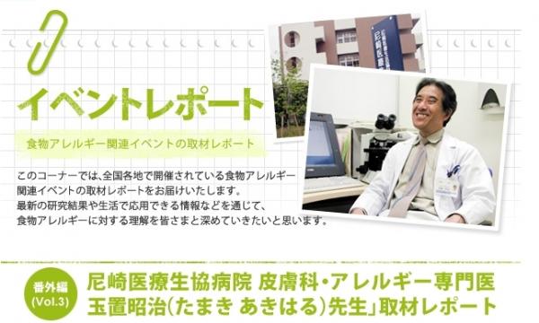 『ハピレピ』では全国各地で開かれている食物関連のイベントのレポートを サイト上でご紹介しています。 今回は食物アレルギーのコミュニティ&アフィリエイトサイト『ハピレピ』が、 皮膚科医でアレルギー専門医でもある尼崎医療生協病院の玉置先生にアレルギーについて取材しています。