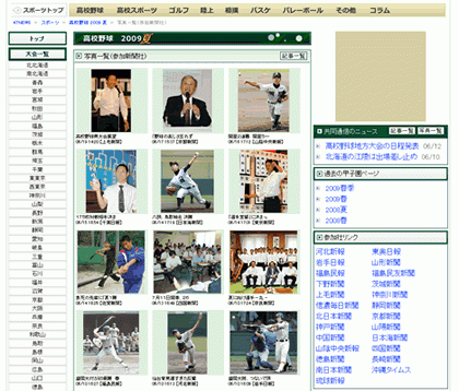 都道府県別大会一覧、過去の甲子園ページ、各地から届く地元新聞社の写真一覧、各地の新聞社サイト特集ページへのリンク集など各種の便利なコーナーを設けました。