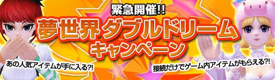 『夢世界ダブルドリームキャンペーン』は、キャンペーン期間にログインされたユーザー様を