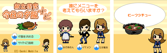 お母さん、イケメン、女子高生の3人のキャラクターから1人を選択すると、数ある献立の中から1つを提案してくれます。