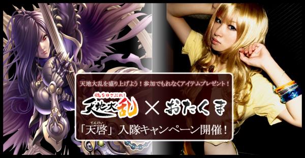今回企画されたキャンペーンでは、「おたくまβ」内に設置された「天地大乱」の「天啓部隊」*にキャンペーン期間中入隊すると、参加者にはもれなく「天地大乱」のゲーム内で利用できる素敵なアイテムプレゼント。