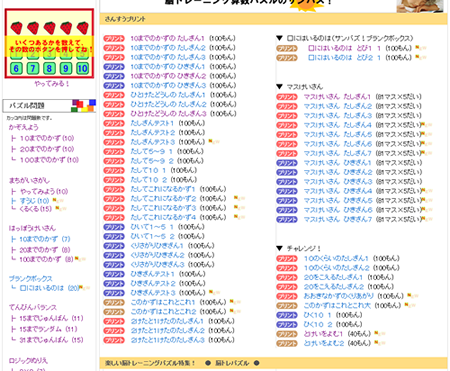 ■サイト名:脳トレーニング算数パズルのサンパズ!小学1年生