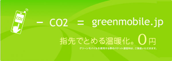 指先で止める温暖化 グリーンモバイル ソーラーフォン(ソーラー携帯)限定キャンペーン グリーンモバイルがソーラーフォンの携帯に限り、カーボンオフセット量2倍キャンペーン実施