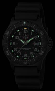 ねじ込み式のリューズにごつごつした無骨なベゼルで強靭なイメージは健在。夜間の視認性はもちろん自己発光システム【ルミノックス・ライト・テクノロジー】が抜群の視認性を発揮してくれます。