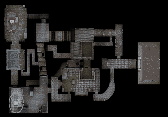 狭い通路が互いに絡み合った構造で、いたる所で激しい銃撃戦が予想されるチームデスフラッグMAP。