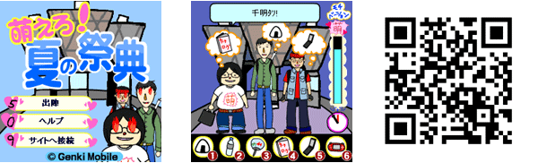 『萌えろ!夏の祭典』は、夏の萌え系イベントの開場待ちをしている3人のキャラクターが待ち時間にモチベーションを落とさないように、水分やカタログなどを素早く的確に選ぶ、早押しアクションゲームです。ゲーム結果はキャラクター達が開場後にどれだけモチベーションを発揮できたか‘充実度'で表示され、シンプルなゲームながらヤリコミ度が高い1本です。ゲーム中に萌え系キャラクター達がプレイヤーを応援してくれるので、充実度100%目指して頑張りましょう。
