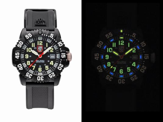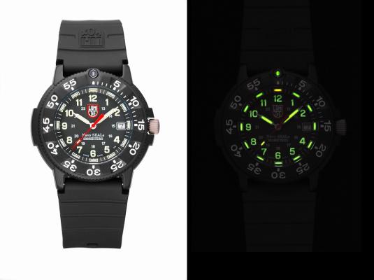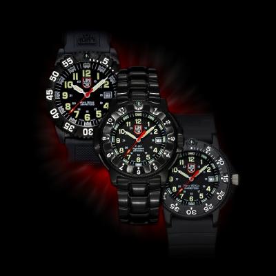 これにより、ミリタリーウォッチとしてのデザイン性も向上しています。次に、夜間の視認性・計時の向上として、ルミノックス最大の特徴でもある自己発光システム『ルミノックス・ライトテクノロジー』とあわせ、インデックスの数字(1~12時)に、蛍光塗料を使用し、暗闇での瞬時の計時を更に向上させています。また、ルミノックスファンから以前より要望の多かった、文字盤への『Navy SEALs』表記(3000、3050シリーズのみ)の復刻も実現させ、ファン心理もくすぐるデザイン変更となっております。完成度の高いオリジナルデザインの良さを壊さず、若干の企画変更を行うことにより、究極の視認性を求めるNavy SEALs、SWAT、Firefighterなどのつわもの達をも必要不可欠な道具(Essential Gear)として満足させるシリーズが今ここに誕生します。