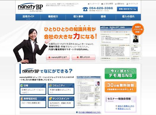 ビジネス利用を目的としたSNSサービスを企業に提供する株式会社サンロフト(静岡県焼津市、代表取締役社長:松田敏孝)では、2009年7月3日、社内SNS構築サービス「nanotyBP(ナノティ・ビー・ピー)」(以下、nanotyBP)の製品紹介サイトを大幅にリニューアルしました。