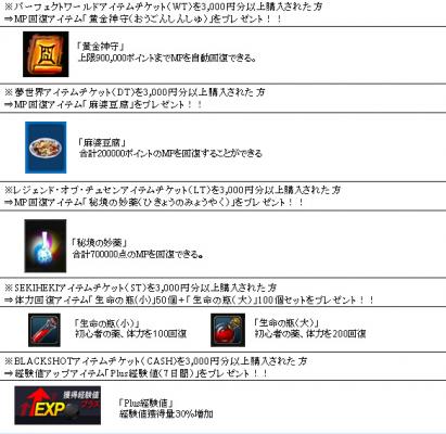 夢世界、LEGEND of CHUSEN、SEKIHEKI、BLACKSHOT)のアイテムチケットを