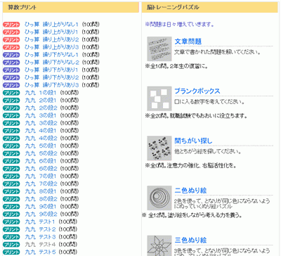 今回、「脳トレーニング算数パズルのサンパズ!小学1年生」と同様に多くの算数問題プリントと、パズル問題を掲載した2年生向けサイトを7月21日にオープンいたします。