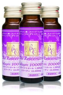 「ピオーネ」の皮から抽出した成分「レスベラトロール」を配合した「ザ・レスベラトロール」は、健康や美容が気になる方のために岡山理科大学 臨床生命科学科との共同開発により誕生したドリンクです。扶桑化学工業株式会社の主力製品であるグルコサミンに加え、美容と健康によいと認知されているコラーゲン、ヒアルロン酸などの成分をバランス良く配合しています。