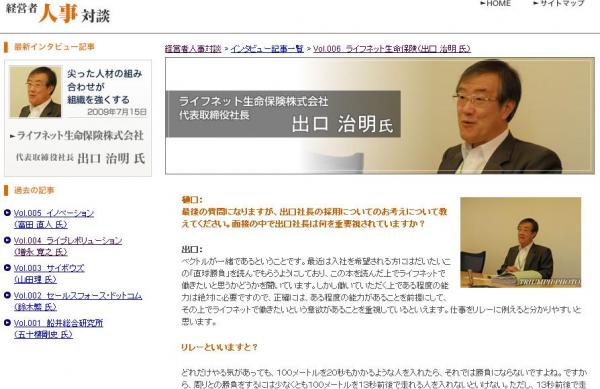今回のゲストは「原価開示」「保険料半額」「他社比較OK」「約款公開」など、これまでのどの生命保険会社とも異なるサービスを提供しているライフネット生命。同社の出口社長に人材マネジメントに対する考え方について伺いました。