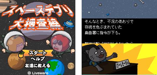 モバイルコンテンツの開発・配信を行う株式会社ライブウェア(本社:東京都新宿区、代表取締役社長:照井 知基)は、 7月15日(水)に株式会社NTTドコモのiモード公式サイト「ゲームの神様」内にて「スペースデブリ大捜査線」の追加コンテンツの配信を開始いたしました。