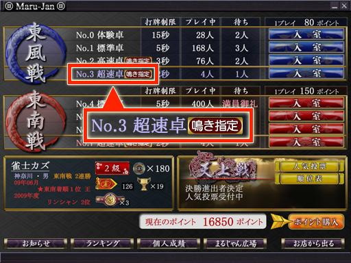 Maru-Janを初めて体験される方や、ゆっくり考えて麻雀を楽しみたい人向けの体験卓、通常のじっくり打ちたい人向けの通常卓、そしてサクサク進めたい人向けの鳴き指定専用となる高速卓と超速卓の登場で、より自分のスタイルにあった卓で遊ぶことができます。