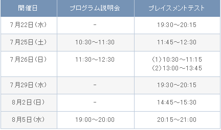 【説明会・プレイスメントテスト日程】
