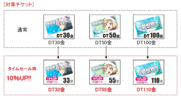 タイムセール期間のみ、対象のアイテムチケット(DT30金、50金、100金)が10%増量いたします!