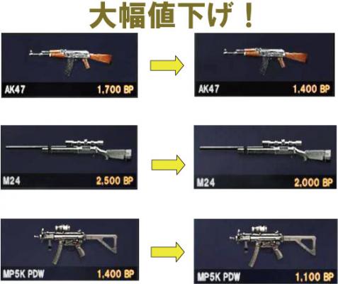 さらに本アップデートにおきまして、武器の購入時のBP価格を大幅に値下げ