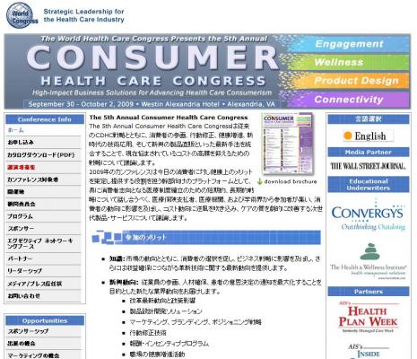 2009年のカンファレンスは今日の消費者に対し健康上のメリットを策定し提供する役割を担う幹部向けのプラットフォームとして、真に消費者志向となる医療制度確立のための短期的、長期的戦略について話し合うべく、医療保険支払者、医療機関、および学術界から参加者が集い、消費者の動向に影響を及ぼし、コスト動向に逆風を吹き込み、ケアの質を劇的に改善する次世代製品・サービスについて議論します。