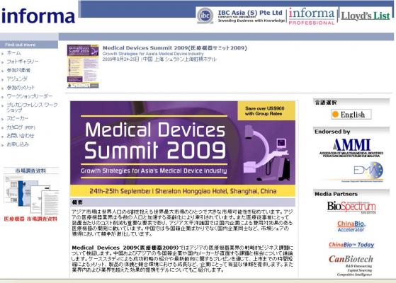 会議:「Medical Devices Summit 2009」